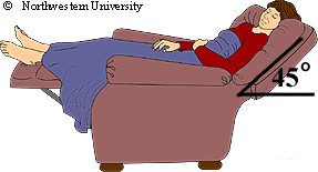 and upright (a 45 degree angle). This is most easily done by using a recliner